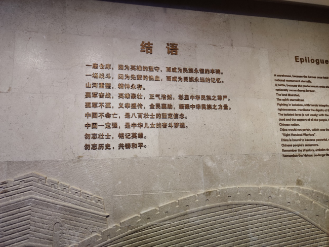 民国二十六年(1937年)“淞沪会战”,时任国民革命军第88师524团副团长的谢晋元带领“八百壮士”,与日本军队在这里鏖战了四昼夜,即“四行仓库保卫战”。 2014年,上海确定对四行仓库进行整体保护修缮,其中4000多平方米空间改建成“四行仓库抗战纪念馆”。八百勇士的英勇抗战,沉重打击了日本侵略者想快速灭亡中国的妄想。