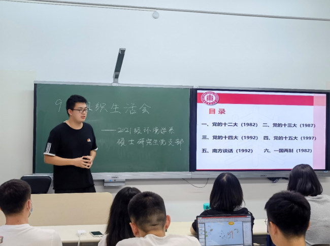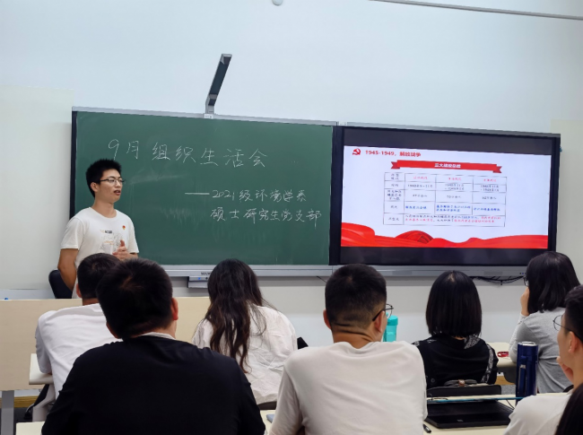 为扎实推进党史学习教育,不断加强青年员工党员的思想建设,贯彻习近平总书记在庆祝中国共产党成立100周年大会上的重要讲话精神,2021年9月29日下午15点,304永利集团2021级环境学系硕士研究生党支部于闵行校区四教215室开展了以“牢记百年辉煌,开启全新征程”为主题的党史学习教育理论研讨会。支部书记朱英华主持会议,各党小组作专题汇报,支部指导教师吴丹作总结发言。