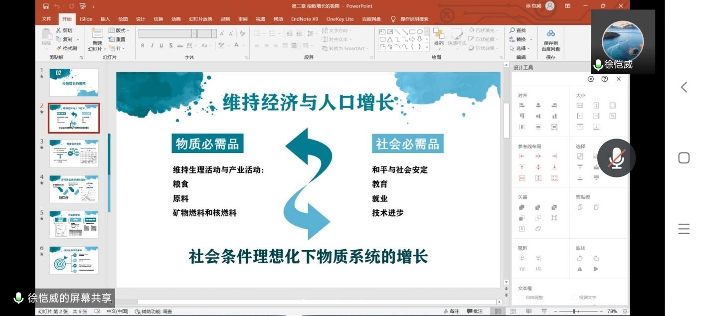 第三组分享的书目是《增长的极限》。徐恺威同学介绍了该书的背景,它是罗马俱乐部关于人类困境的研究报告,所阐述的“合理的持久的均衡发展”为孕育可持续发展的思想萌芽提供了土壤。其他组员分别从指数增长的极限、世界系统中的增长、生产技术增长的极限和全球均衡的状态四部分发表了自己的见解与思考。