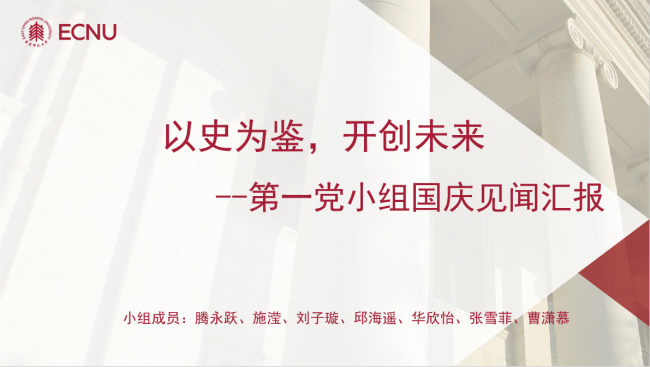 第二党小组和大家分享了在国庆期间观看的红色电影“我和我的”系列中的三个片段。其中,第一部电影为《我和我的祖国·回归篇》,该篇以几个普通人的视角切入,他们分别是中方外交官、仪仗队军人、香港警察、钟表师傅,虽然身份不同,但心愿一致。第二部是《我和我的祖国·前夜篇》,该篇则是讲述了开国大典前夜,一线人员为保障开国大典国旗顺利升起,争分夺秒排除万难,用一个惊心动魄的未眠之夜确保立国大事“万无一失”。最后一部《我的我的父辈·乘风篇》讲述了抗日战争中,革命军人不怕苦难,英勇就义的过程。三个简简单单的片段都展现出了先辈们为时代、为社会做出的点滴贡献,值得讴歌。