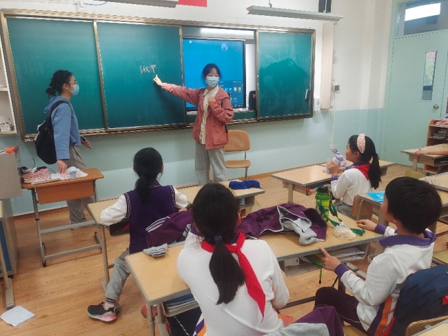 永德实验小学则由颜溢老师、心怡老师、小舒老师在四年级两个班级分别进行课程教学,课程内容分为课堂内理论教学和校园实践两部分。