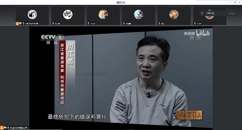 在活动的第一部分,全体党员一起观看了《零容忍——永远在路上》,就像警示教育片的题目一样,反腐倡廉我们永远在路上,影片通过了浙江省委原常委、杭州市委原书记周江勇案,安徽省滁州市基层公职人员张雨杰贪污巨额公款案,海南省委原常委、海口市委原书记张琦案等典型案件,透视了反腐败斗争的长期性、复杂性、艰巨性,不管在什么位置上,都要高度重视腐败问题,引发了青年的思考。