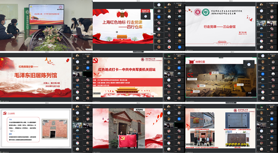 随后,各党小组结合PPT和视频影像资料,将各自现场参观红色场馆的学习情况进行汇报展示。各党小组认真讲述所见所思所感,围绕“场馆介绍、历史背景、人物生平、革命意义和心得体会”等方面,分享了“四行仓库、三山会馆、毛泽东故居和中共中央军委机关旧址”四处红色教育基地,带领党员回顾了每一处红色场馆感人至深的红色往事,引导党员深刻认识到红色政权的来之不易,中国特色社会主义的来之不易。各党小组不仅讲述了中国共产党发展建设及共产党人革命历程的艰难险阻和跌宕起伏,还表明今后要向历史和先烈们致敬,继承和发扬先辈们奋发有为、艰苦奋斗的良好作风,奋力创造新时代的伟大奇迹。