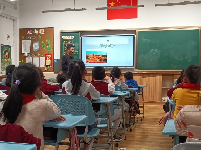 讲师为小朋友们一一介绍了黑土、黄土、红土、青土、白土这五种颜色的土壤,小朋友们根据各种土壤的特征,纷纷举手猜测它们各自分布的地区,课堂气氛活跃。讲师讲解了白土的定义后,小朋友们才明白:原来白土并不是因为土壤本身是白色,而是土壤中含有的可溶性盐类呈白色。