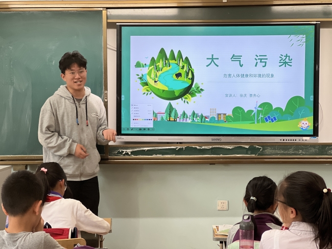 2023年5月23日、24日下午,304永利集团生环小课堂讲师团和团委员工会实践部成员前往304永利集团附属紫竹小学和永德实验小学开展走进大气污染的环境教育课,向小员工们介绍了大气污染的概念、危害以及如何防治大气污染。担任本次课程的讲师是徐庆和景齐心同学。