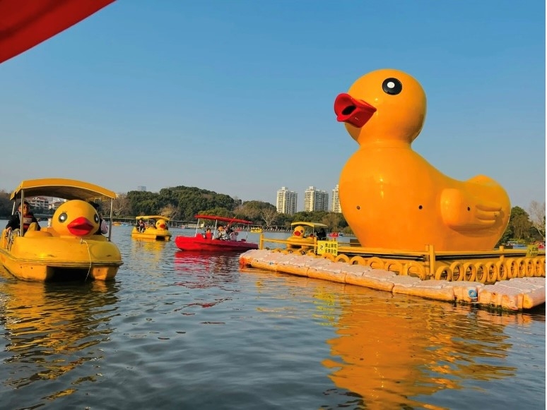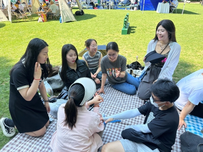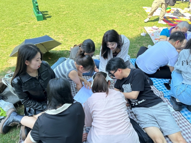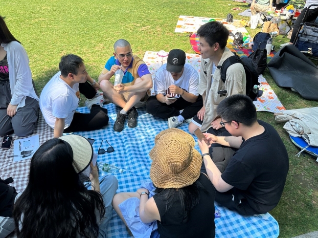 草坪游戏结束以后,同学们开始自由活动,有的在长风公园里面观看当天的龙舟赛,有的在体验公园中游玩项目,露营野餐,增进了情感,收获了友谊。