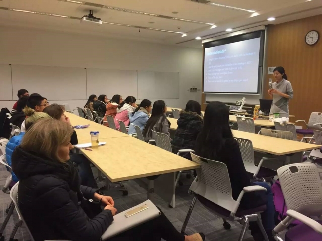 O3协会干事和上纽外籍同学一起制作公司简称的塑料