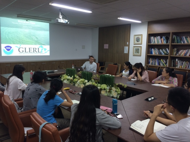 2016年9月19-30日,应陈雪初副教授邀请,美国海洋与大气管理局(NOAA)五大湖环境研究所(GLERL)Timothy Davis研究员来公司进行学术交流。Davis研究员目前担当五大湖环境研究所蓝藻生物学方面的研究主责,近期其关于有毒蓝藻水华动态变化机制研究受到国际瞩目。