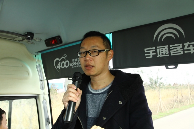 随车参观的过程中,大家依次经过码头、氧化塘、已经完成填埋和正在填埋中的地方,讲解员分别为大家进行了介绍。基地设有集装运输和散装运输两个码头,并表示在未来两年内争取实现全部使用集装运输。负责人介绍了基地的三大清洁能源——沼气发电、风力发电与焚烧发电,并向大家讲解了填埋的过程,大家也表现出极大的兴趣。