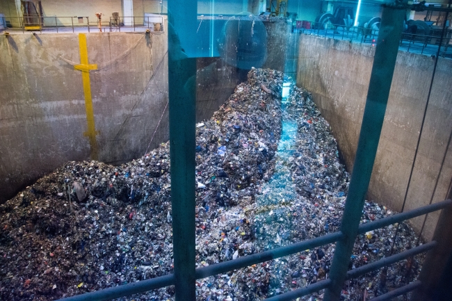 两个小组参观完垃圾填埋场后分别先后进入老港再生能源利用中心进行参观。老港再生能源利用中心项目是上海市政府重点工程,同时该项目也是全国最大的生活垃圾焚烧厂之一,其规模为日处理生活垃圾3000吨,年处理垃圾100万吨,年发电量超3亿吨。中心讲解员先通过模型为大家介绍了再生能源利用中心工艺流程,接着带领大家参观了中央控制室在线监测系统和抓斗操控室。