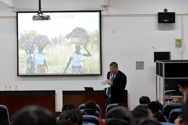 接着,窪田顺平教授做了题为“作为地球环境问题的水资源——森林与水,以及虚拟水”的学术报告,介绍了水资源的特征、森林与水资源的关系,并对比世界各国虚拟水的收支情况,探讨了人与自然的理想状态,引发了大家对如何去平衡人们对富裕生活的追求和对环境造成的负担之间的思考。