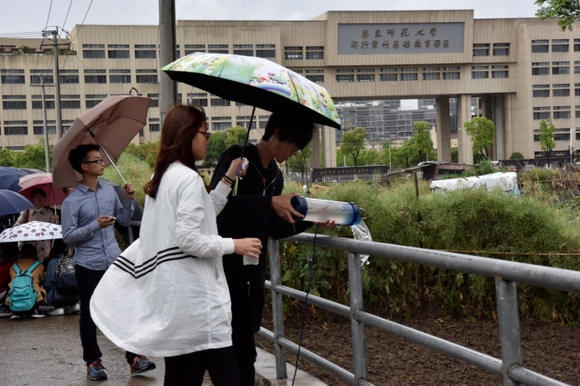 下午12:45,参加活动的师生在资环楼148集合,此次参加活动的同学被分成八个小组,每两个小组一个采水器,一套上海三信SX736型便携式pH/电导率/溶解氧仪。首先由助教为大家分发标有采样点位置的路线图,张勇、路葵老师为大家详细讲解了行程安排和一些注意事项。另外,此次活动还邀请到了上海奕枫环境仪器公司的张海迎工程师进行全程指导。