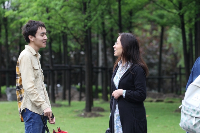 一路欢声笑语,伴着雨后的阳光和清新的空气,同学们很快就走到了滨江公园。 滨江公园位于黄浦江防汛堤坝上,沿着黄浦江大约有2公里长,将生态设计、生态工程与防汛堤坝结合在一起,建成了长长的亲水平台、长堤和栏杆,既给人以视觉的美感又让人们可以亲近河流、亲近自然。人们可以在公园里垂钓、玩耍,这大片的绿地是城市中少有的静雅之处。