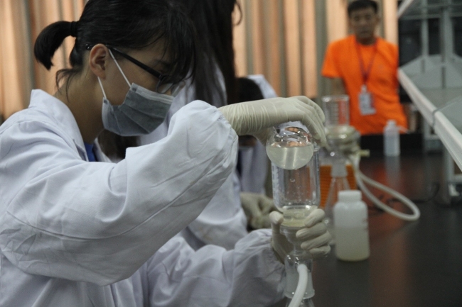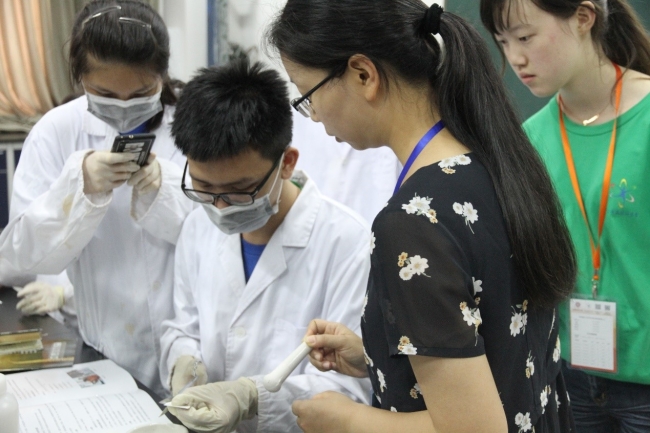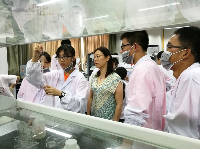 同学们在谭珊珊老师指导下动手实验