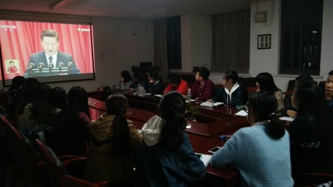 通过收看十九大开幕式盛况,同学们更加关注十九大会议进程,对十九大报告精神有了更加深入的理解。青年的使命,国家的未来,我们将紧密团结在以习近平总书记为核心的党中央周围,谨记使命,开创未来。