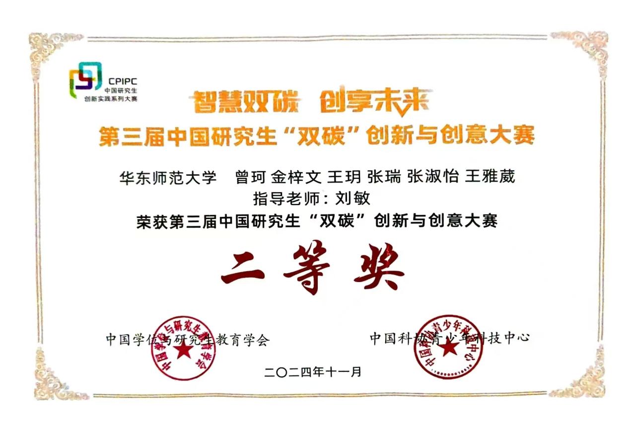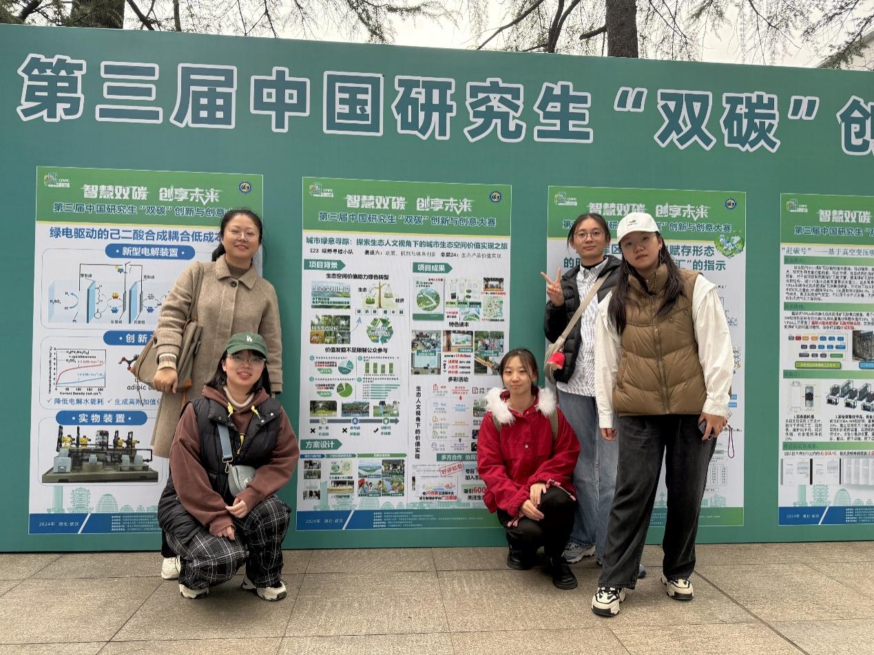 2024年11月22-24日,第三届中国研究生“双碳”创新与创意大赛决赛在武汉理工大学举行。304永利集团由刘敏老师指导,曾珂领队,金梓文、王玥、张瑞、张淑怡、王雅葳同学参与的《城市绿意寻踪:探索生态人文视角下的城市生态空间价值实现之旅——以上海市闵行区吴泾镇为例》项目荣获全国二等奖。由陆雪琴老师指导,衡世亮领队,吴鑫涛、孙一波同学参与的《“光”“铁”妙用—高效去除抗生素铁基光催化剂的构筑同步耦合生物膜反应器产甲烷装置的研发》项目荣获全国三等奖。