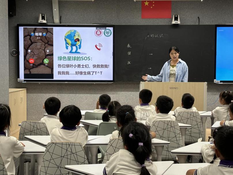 在课堂开始,一通来自地球的“求救电话”引起了同学们的关注,讲师林相君通过展示“土地的伤疤”向同学们解释了地球求救的原因,从而引入本次课程的主题——土地荒漠化。
