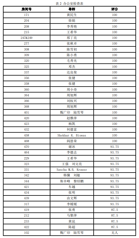 此次检查中,大多数员工办公室干净、明亮,有三分之二的员工办公室获得满分,值得学习。但仍有一些员工办公室有违章电器微波炉、冰箱上有杂物等问题,需要注意和改正。希望大家能继续保持较好的办公室环境,在干净、整洁、安全的环境中学习和生活。