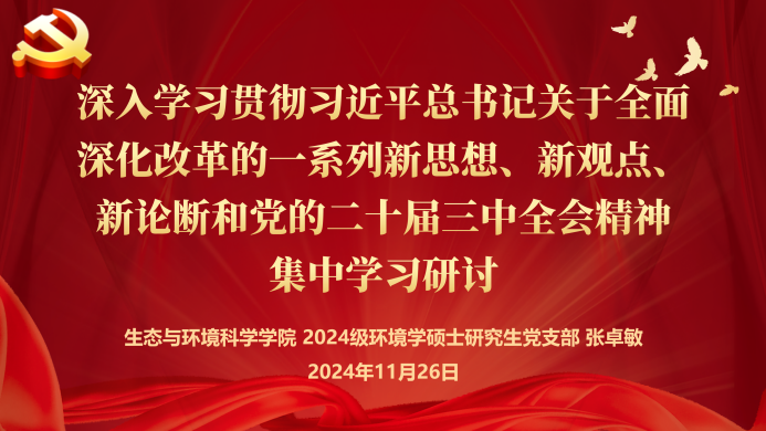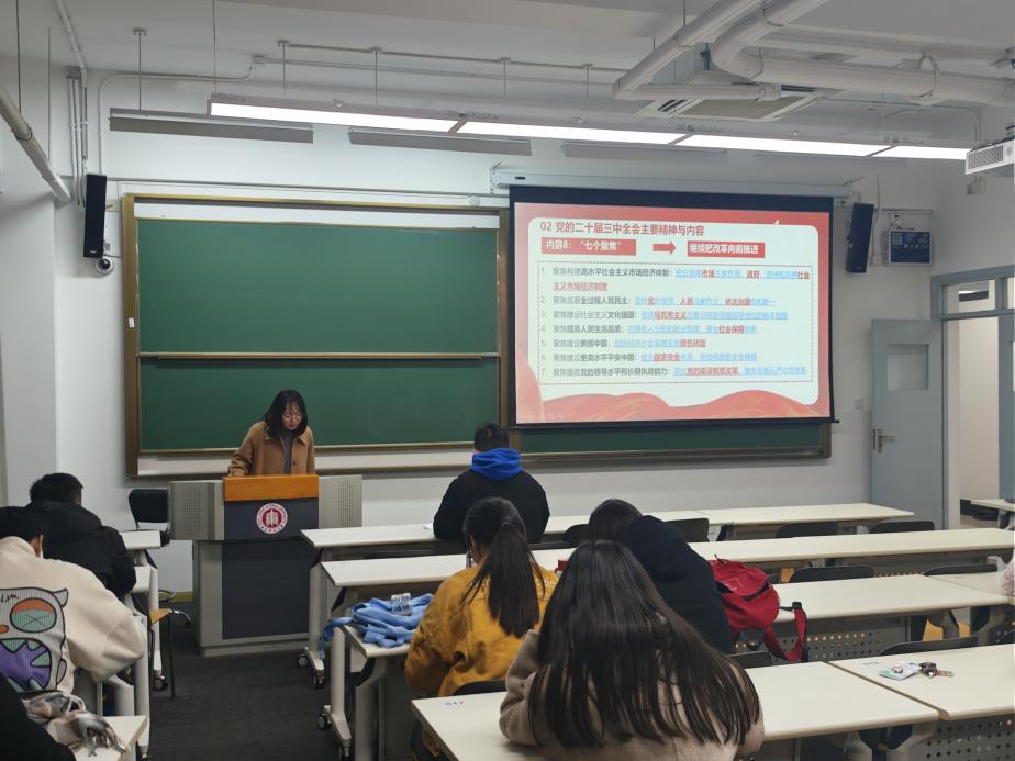 活动第一部分,由支部副书记张卓敏带领党员开展全校第三次集中学习研讨会。她首先对党的二十届三中全会背景做了简要介绍,随后带领大家回顾了三中全会的主要内容和精神实质。她指出,全会审议通过的《中共中央关于深化党和国家机构改革的决定》和《党和国家机构改革方案》,是新时代新征程党和国家机构改革的纲领性文件,为我们提供了根本遵循和行动指南。支部党员深入学习贯彻党的二十届三中全会精神,推动党组织理论学习与实践工作深度融合,进一步凝聚共识、汇聚力量,为实现党的宏伟目标贡献力量。