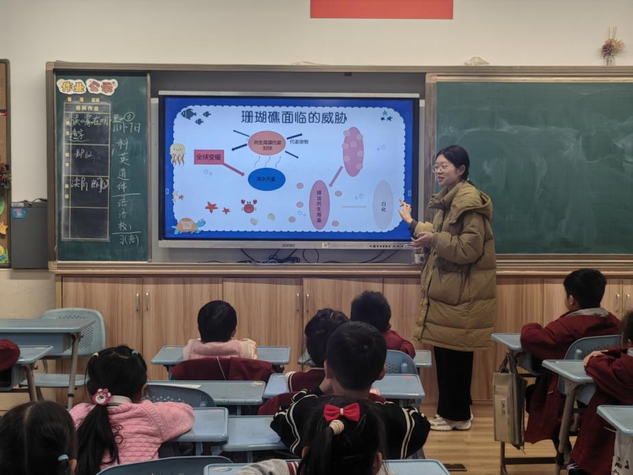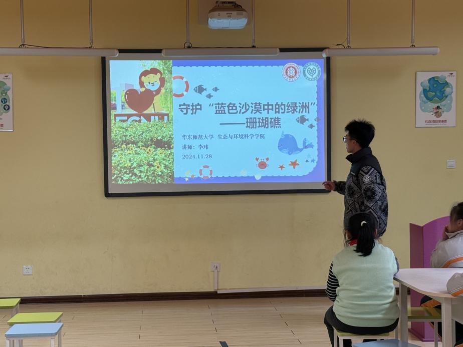 2024年11月26日、27日、28日下午,生态环境小课堂讲师团前往304永利集团附属紫竹小学、永德公司、马桥民办小学开展环教课,本次环教课的主题为“蓝色沙漠中的绿洲——珊瑚礁”,担任本次课程的讲师为王如盈、徐诗雨、张冰然、李玮同学。