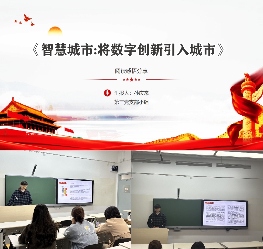 第三小组选择了《智慧城市:将数字创新引入城市》,由孙庆来同学进行介绍。孙庆来同学在介绍中强调了数字技术在城市管理中的应用对环保的重要性。他们分享了数字技术如大数据、物联网等在城市环境监测、资源管理、交通优化等方面的应用案例,激发了与会者对智慧城市建设中的环保问题的关注。