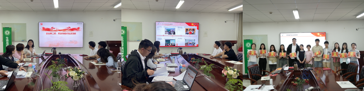 支部书记朱英华带领大家回顾支部组织生活,对2021-2023年度支部建设情况及党员发展等作总结汇报。支部自成立以来以习近平新时代中国特色社会主义思想为指导,教育党员增强“四个意识”、坚定“四个自信”、做到“两个维护”,不仅坚持开展了时政要闻专栏,正确引导党员对热会焦点的认识,也先后召开了学习党史校史座谈会等主题党日活动、举办了学习贯彻党的二十大精神系列活动,组织了“弘扬建党精神,汲取奋进力量”的专题行走党课,还积极创新学习方式,采取观影与收看直播会议、配音年代剧、红色知识竞答、传递学习心得记录本等形式,坚持党员教育“从新”更“入心”,扎实推进党员教育管理监督的常态化和制度化。随后,支部向各年度全勤参与组织生活的党员颁发了奖状并合影留念。