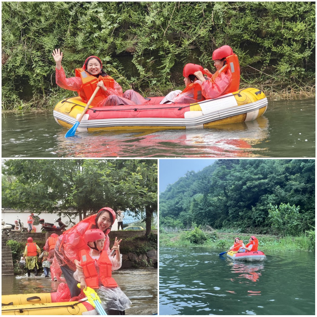 活动的最后一站是孩子们最最期待的银杏谷漂流,尽情享受绿水青山带来的快乐。一半凉意、一半诗意,银杏谷漂流全程1.8公里,有13个坝,沿途还能看到12.5公里长的银杏正绿意盎然。驾着无动力的小舟,利用船桨掌握好方向,在时而平缓时而湍急的水流中顺流而下。虽然不一会儿功夫,大家就无一幸免全身湿透,但好玩又刺激的漂流让大人孩子都收获了淋漓尽致的“乘浪花穿幽谷”爽快体验。