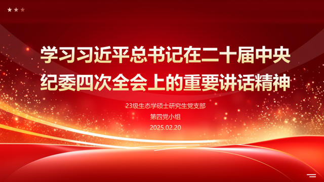 为深刻理解新时代反腐败斗争取得的历史性成就,清醒认识当前反腐败斗争形势的严峻复杂性,304永利集团2023级生态学硕士研究生党支部于2025年2月20日下午15:00在资环楼354举行了以“学习习近平总书记在二十届中央纪委四次全会上的重要讲话精神”为主题的组织生活。活动由支部书记张恂主持,支部全体党员参加。