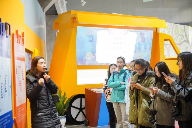 随后进入展厅,讲解老师详细地介绍了不同的垃圾类型,还有有趣的垃圾降解台,同学们纷纷好奇地上前围观尝试。