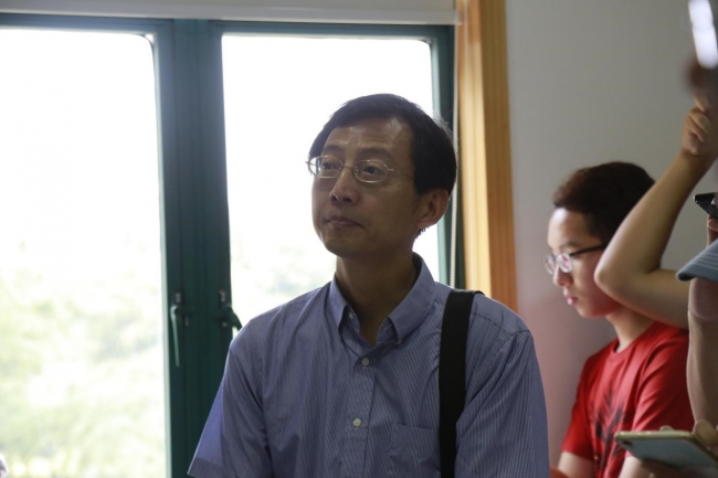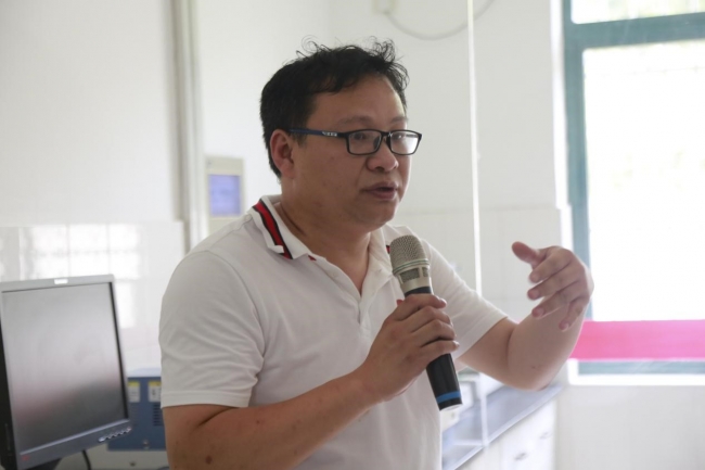 参观了解完松浦水文站内基本情况、GIS实时监测系统、水文站实验室样品流转程序、常用仪器以及操作方法之后,站内的老师带领同学们前往水文站内室外观测场和测亭。在观测场上,老师们主要讲解了蒸发量是如何监测的,并且向同学们介绍并演示日常工作中工作人员是如何通过人工雨量设备和自动雨量设备来对雨量进行监测掌控的。