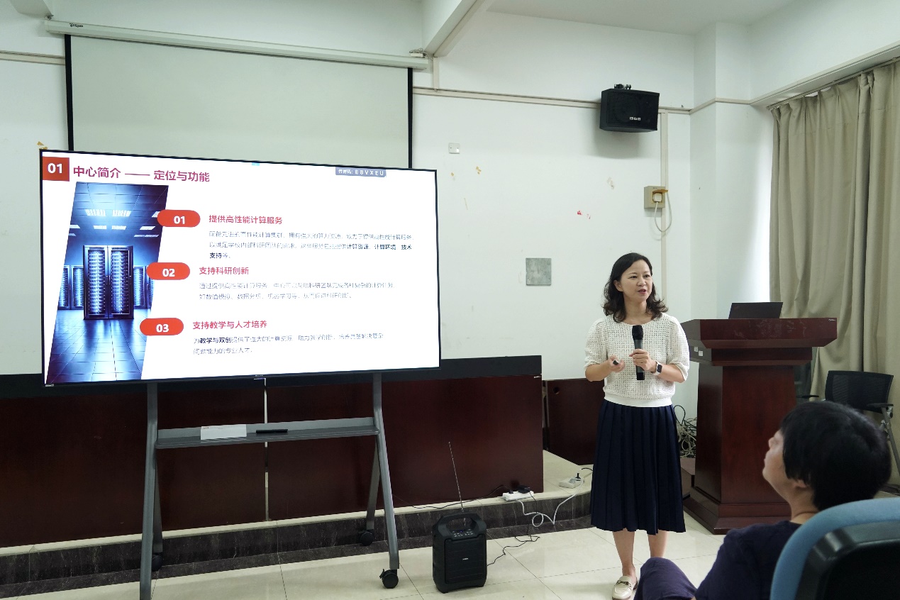 高性能计算中心主任胡文心为大家介绍了公司高性能计算中心的组织构建、主要服务内容及特色服务模式。胡文心表示,随着人工智能AI的兴起,高性能计算机的使用面在全校逐步扩大,用好高性能计算机是未来科学的发展趋势。高性能计算机不仅应用于科研领域,应用在教学和员工双创工作中能极大的提升育人成效。欢迎生环公司师生到高性能计算中心体验“数智”的魅力。