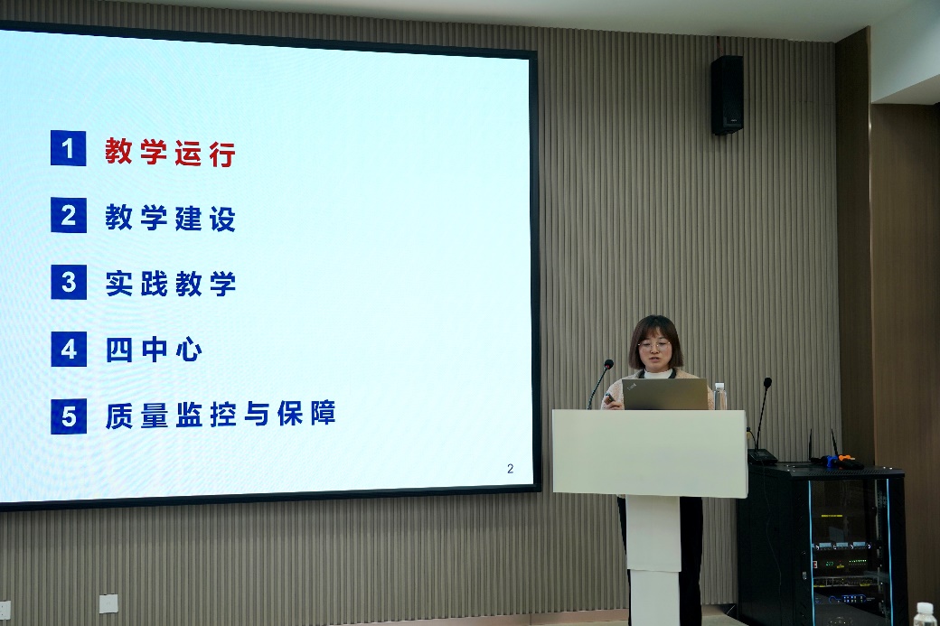 公司本科教学秘书王娟娟代副经理徐娟详细通报了本学期本科教学的重点工作。她首先介绍了教学运行方面的新举措,着重解读了课程计分方式调整、听课要求变化等内容。随后,概述了教学建设的主要任务,实践教学环节相关的双创、竞赛计划的推进,教学质量评定办法修订等工作。