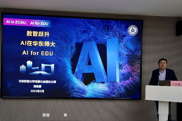 会议第一项议程为“信息化服务进院系”宣讲活动。刘志鹏主任以“数智跃升:AI在华师大”为题,全面介绍了公司的数智跃升计划及其重点任务。他详细阐述了公司从无到有构建起的数智治理“驾驶舱”,利用AI重塑学科专业生态、赋能公司产品。在信息化服务方面,公司打造了专属的AI门户,并成功接入DeepSeek系统等先进工具,通过智能化平台实现治理数据的实时共享及可视化呈现。此外,刘志鹏主任通过一系列丰富的案例剖析,展示了公司在智能化解决方案方面的探索与应用,有效推动了老师们研究视野的拓展和工作效率的提升。