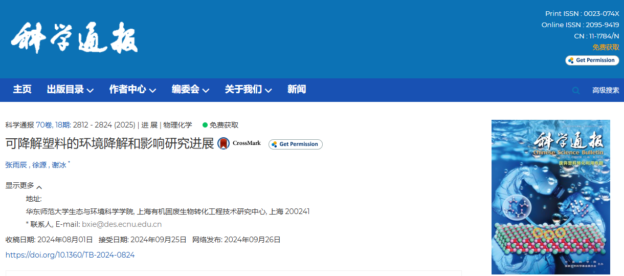 张雨辰,徐源,谢冰.可降解塑料的环境降解和影响研究进展.科学通报, 2025, 70(18): 2812–2824.