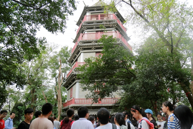 在辰山塔前合影