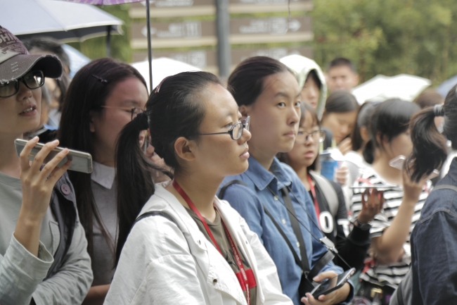 绵绵细雨,也淋不走大家的好心情,一把把小花伞凑在一起,成了辰山植物园一道美丽的风景