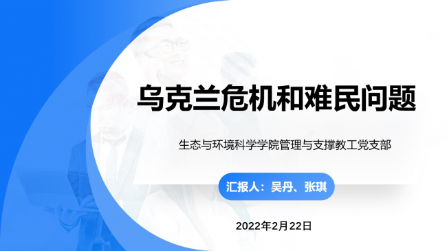 2022年2月22日下午,生环公司管理与支撑教工党支部在资环楼146举办第四场寒假学习分享主题活动,分享人是陈然、吴丹和张琪老师。陈然老师分享的主题是《正风反腐,必须“零容忍”》;吴丹和张琪两位老师组成小组,分享的主题是《乌克兰危机和难民问题》。