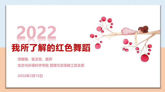 2022年2月15日下午,生环公司管理与支撑教工党支部举办第三场寒假学习分享主题活动,分享人是董舒、谭珊珊、崔玉雪、姚芳芳、宋萌和杨海波老师。董舒、谭珊珊、崔玉雪三位老师组成小组,分享的主题是《我所了解的红色舞蹈》;姚芳芳老师分享的主题是《梦想与成长——<心灵奇旅>观后感》、宋萌老师分享的主题是《传承与突破——感受2022年北京冬奥会》、杨海波老师分享的主题是《人类群星闪耀时读后感》。