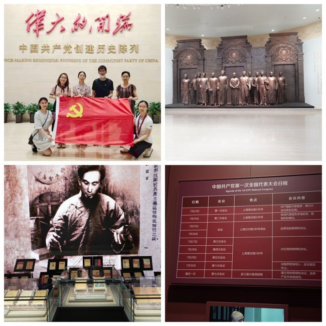 中共一大纪念馆经过将近两年的建设,以全新面貌迎接建党百年。纪念馆展厅以《伟大的开端》为主题,分为五个部分,第一部分“前仆后继 救亡图存”、第二部分“民众觉醒 主义抉择”、第三部分“早期组织 星火初燃”、第四部分“开天辟地 日出东方”和第五部分“砥砺前行 光辉历程”。展馆围绕“初心使命”,通过图片、影像、文字和实物生动形象的展示了中国共产党的诞生历程,参加活动的老师同学在展示资料前驻足观摩、认真学习。在参观结束后,20级全体党员员工来到宣誓墙前,吴丹老师带领支部党员同志重温入党誓词,进行入党宣誓。宣誓完毕,大家深受触动,纷纷表示更加坚定了自己的入党初心和理想信念。在中共一大会址,大家目睹了当年中共一大筹备过程中诸多的场景,感受到会议召开的艰辛不易,表示今后要不断发扬党的优良传统,为实现中华民族的伟大复兴的努力奋斗。