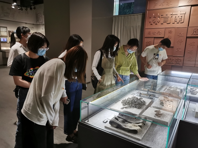 仪式结束后,在解说员的引领下,同学们参观龙华烈士纪念馆。龙华烈士纪念馆以《丹心碧血为人民——上海革命烈士革命先驱英雄业绩展览》为主题的基本陈列,反映了1840年鸦片战争以来上海英烈的革命历程和英勇事迹。馆内由序厅、前言厅、旧民主主义时期厅、新民主主义时期第一厅、新民主主义时期第二厅、新民主主义革命时期第三厅、新民主主义革命时期第四厅以及社会主义革命时期厅共八个展厅组成。同学们在讲解员的讲述中,仿佛回到了那个激情燃烧的年代,顾正红、罗亦农等我党先辈的故事令大家动容,也令大家惋惜。此外,同学们还从讲解员的口中了解到“龙华二十四烈士”的英雄事迹,它们或浪漫,或温情,却又透着残酷,配合着馆内舞台剧影像的故事呈现,在同学们的心中都留下了深刻印象。参观的党员在纪念馆中听讲解、细观察,重温上海建党以来新民主主义革命和社会主义革命的历史,同学们被一个个鲜活的革命故事感动着,老一辈共产党员艰苦奋斗、顽强拼搏的革命精神,激励大家不断开拓进取,践行初心使命。