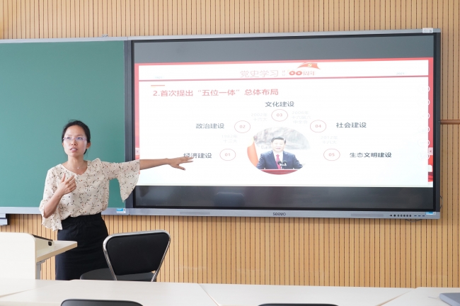 首先由管理与支撑教工党支部党员刘敏老师讲读,她的题目是“伟大梦想引领团结奋斗——中共十八大历史回顾”。刘敏老师为大家详细介绍了中共十八大的召开背景、会议内容及其重要意义。她讲到,党的十八大是在迈入21世纪第二个10年之际召开的。当时我国全面建设小康社会进程过半,已进入决战阶段。同时,这次大会是在国内外形势正在发生深刻变化的背景下召开的。党的十八大报告指出,建设中国特色社会主义,总体布局是五位一体,总任务是实现社会主义现代化和中华民族伟大复兴。报告对五位一体总体布局的阐述是,全面推进经济建设、政治建设、文化建设、社会建设和生态文明建设,实现以人为本、全面协调可持续的发展。从取得的重大成果看,党的十八大提出了夺取中国特色社会主义新胜利必须牢牢把握的基本要求,确定了全面建成小康社会和全面深化改革开放的目标,对新的时代条件下推进中国特色社会主义事业做出了全面部署,对全面提高党的建设科学化水平提出了明确要求。