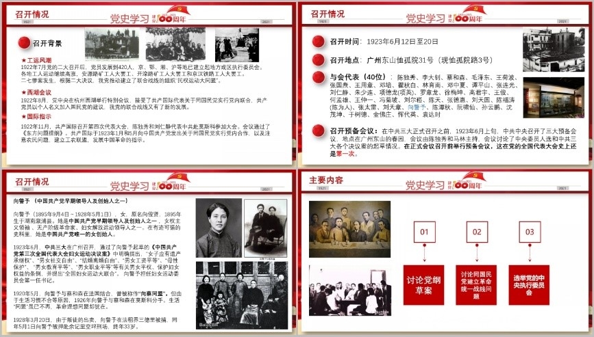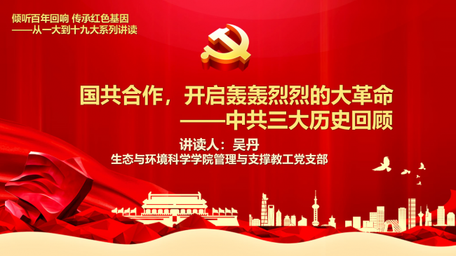 第三讲由管理与支撑教工党支部党员吴丹讲读“国共合作,开启轰轰烈烈的大革命——中共三大历史回顾”。吴老师围绕中共三大的召开背景、会议情况、主要内容和历史意义,对于首次出现的女性代表向警予、《中国共产党党纲草案》《中国共产党第一次修正章程》进行了详细的解读。大会的中心议题是讨论同国民党建立革命统一战线问题,经过两天的激烈争论,会议最终正式决定共产党员以个人身份加入国民党,实现国共合作。会议选举了中央委员和候补委员,组成中央局,毛泽东担任秘书,进入中央领导核心。中共三大完善党的各项制度,加强党的自身建设;实现了党的工作重心的第一次战略转变;揭开了国共合作的序幕,革命统一战线正式建立;使中国共产党从比较狭小的圈子里走出来,在更广阔的革命斗争的天地中接受锻炼,迎接大革命高潮的到来。