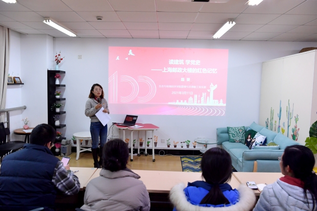 3月11日中午,支部在资环楼146开展“上海邮政大楼的红色记忆”专题党课学习,由支部书记路葵主讲。