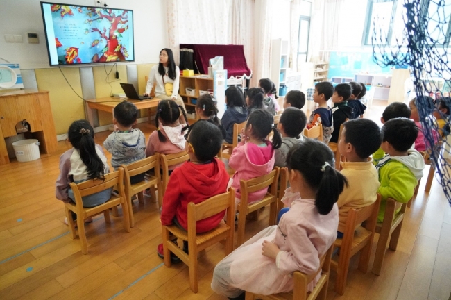 邓雅文同学带领小朋友做绘本阅读