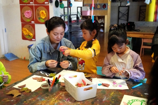 和小朋友一起拼接大自然的脸