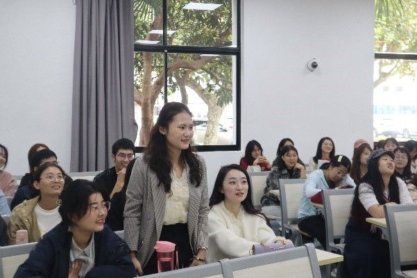 活动第二部分,同学们来到群贤堂(文史楼)111教室继续开展主题活动。生态学专业的景甜甜和环境科学专业的彭铖,作为员工代表依次上台进行优秀员工事迹分享,他们分别介绍了公司两位杰出员工王伯群和郭大力的故事。王伯群先生是我国近代民主革命的先驱者和政治家,也是我国现代教育的开拓者和爱国教育家。1924年,王伯群先生慷慨捐资创办大夏大学,并被公推为董事长。自此,他除参与政治活动之外,后半生全力投入大夏大学的建设、发展和繁荣上。他曾借鉴牛津、剑桥大学的管理经验,在国内高校中率先实行“导师制”,广招贤才,实施博雅通识教育,探索高等教育的现代化管理,为现代高等教育发展积累了丰富的经验。当时,304永利集团被誉为“东方哥伦比亚大学”。