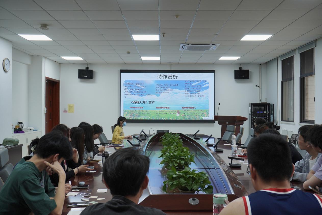 随后,活动进入了充满诗意与文化气息的环节——“世界读书日·海子诗歌分享会”。徐冰倩同学带领大家领略海子诗歌的独特魅力。海子的作品让党员们深刻感受到了他对人生的思考、对理想的追求以及对生死的超然态度。此外,活动还特别介绍了拼贴诗这一新兴艺术形式,从其起源、发展到影响,全方位展现了拼贴诗的创意与魅力,激发了党员们对诗歌创作的浓厚兴趣。