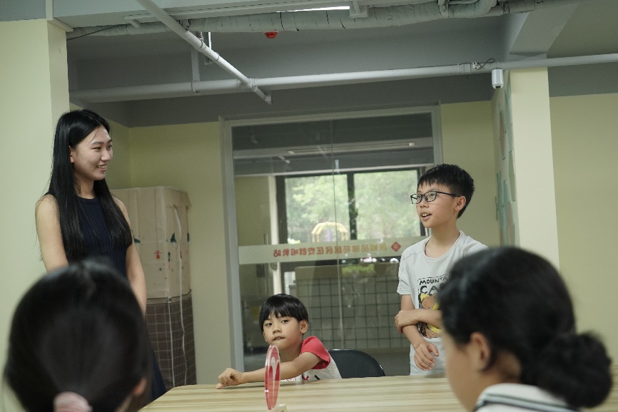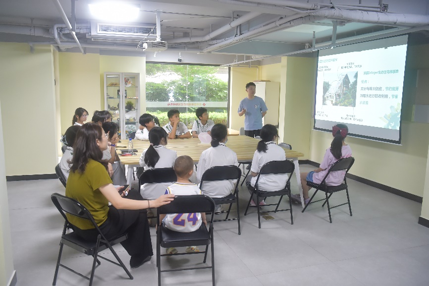 7月11日 朱泓恺同学带领小朋友认识绿意盎然的生态建筑