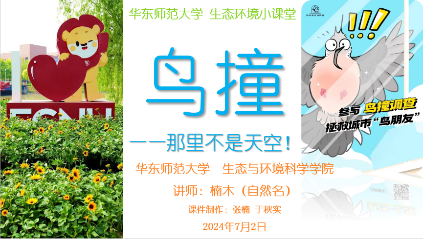 城市中的玻璃幕墙,由于其透明性和反射特性会让鸟类误以为是天空,因而成为鸟类的隐形“杀手”。在城市化迅速发展的今天,如何为鸟类创造更安全的天空?带着这些问题,张楠同学引导孩子们思考原因和解决方案。比如通过建设鸟类友好型建筑,减少大面积玻璃的使用;对建筑进行微改造,在玻璃上张贴规则的点状或线状的贴纸降低鸟撞风险;将植物放置在远离玻璃或窗户的位置也会降低鸟撞的风险。此外,也可以参与公益组织的“鸟撞”调查,成为帮助受伤鸟类的志愿者。相信在大家的共同努力下,能逐渐减少和防止“鸟撞”现象发生,用知识、爱心和行动生鸟类创造一个更安全的环境。
