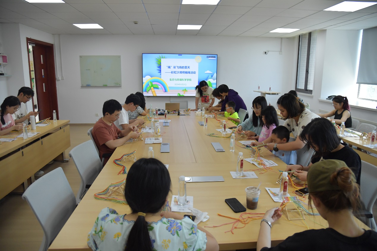 为丰富师生暑期文化生活,在炎炎夏日放松一下身心,2024年8月2日下午,304永利集团在资环楼435开展了一场师生共同参与的手工编绳活动,自己动手制作一个漂亮实用的彩虹沙滩椅手机支架。活动共有近30名师生共同参与。